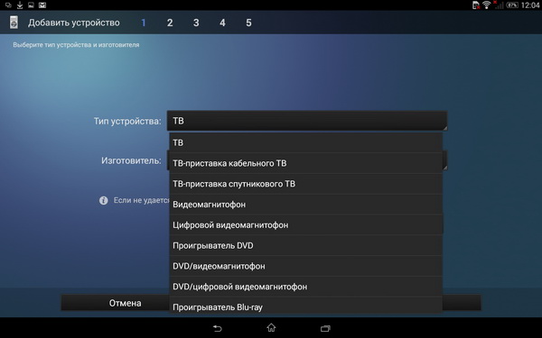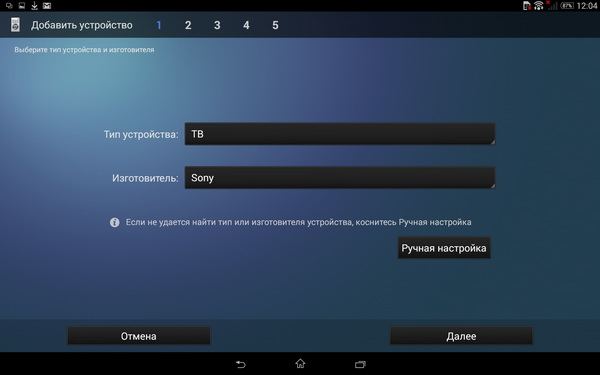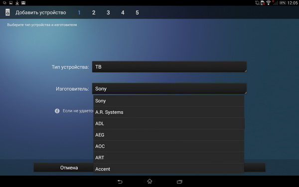 Планшет можно использовать в качестве пульта дистанционного управления. Добавляете устройство и производителя - получаете соответствующий пульт.