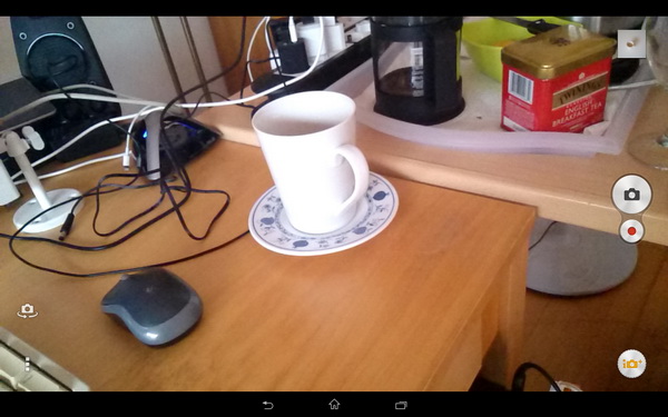 Снимает планшет терпимо: прилично фокусируется, особо не лажает с балансом белого, нормально выбирает параметры экспозиции - процент "шевеленки" при нормальном освещении очень небольшой. Рабочие ISO где-то до 400, дальше идет сильный шум, но это обычное дело на таких матрицах.