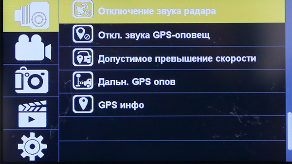 "Режим оповещения" - в этом регистраторе доступны три варианта оповещения о камерах: база данных GPS, радар, база данных GPS + радар. Лучше, конечно, включать оба варианта оповещения.