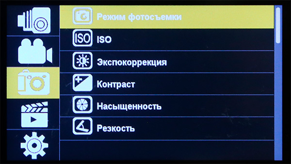 Следующая вкладка - "Видеосъемка".