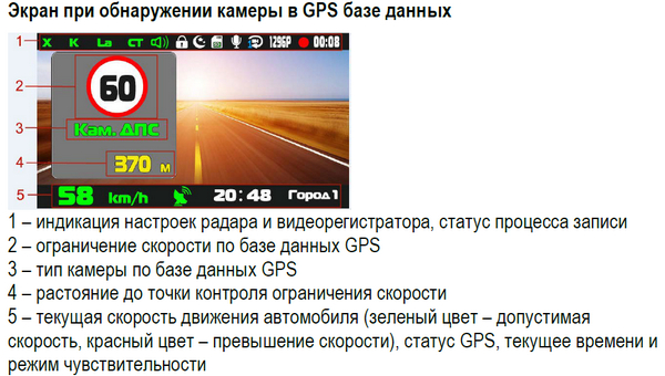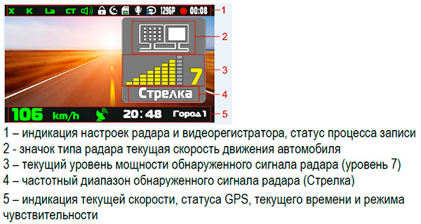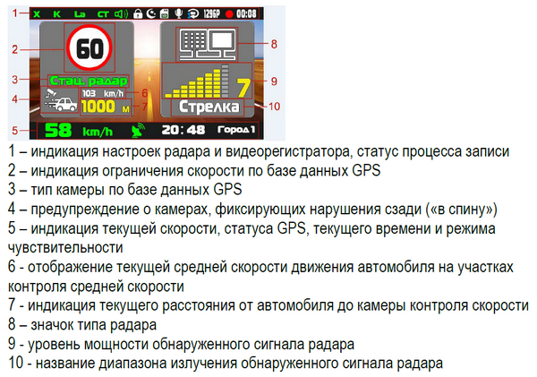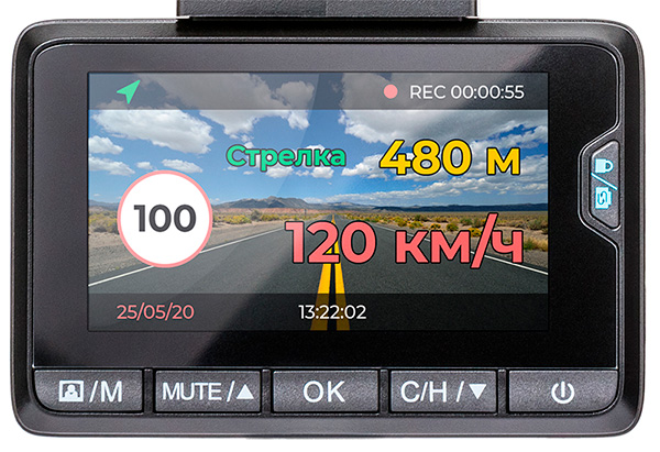Теперь о том, какую информацию может получать водитель на экране данного видеорегистратора.