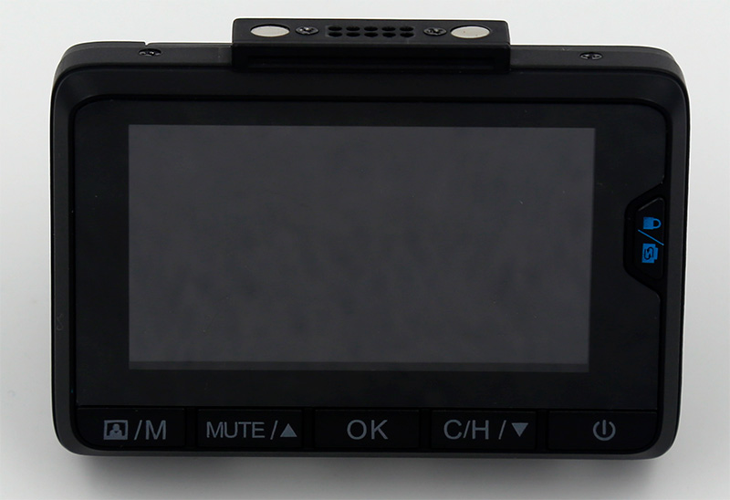 Видеорегистратор имеет традиционную форму, в передней части под объективом расположена решетка динамика.