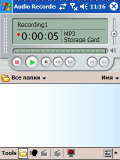 Практически все КПК и коммуникаторы можно использовать в качестве цифрового диктофона. У него вполне приличное качество записи и воспроизведения (проверено на пяти различных моделях), причем даже лучше, чем качество отдельных цифровых диктофонов. При этом даже обычная, входящая в операционку программа умеет писать звук в MP3 на внешнюю карточку, так что по поводу времени записи можно не тревожиться - при наличии даже не особенно емкой внешней карточки памяти места хватит на десятки часов записи.