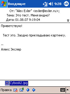 Электронной почтой также можно пользоваться без особых проблем, тем более что коммуникаторы на Windows Mobile вполне понимают различные виды вложений - документы Word, таблицы Excel, базы Access, различные изображения и так далее.