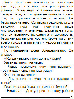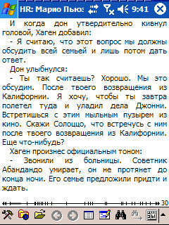 При чтении экран КПК напоминает страницу покетбука. Я обычно читаю вот с таким размером шрифта - это достаточно комфортно, да и страницы приходится переворачивать при моем скорочтении где-то раз в десять секунд, что вполне нормально.
