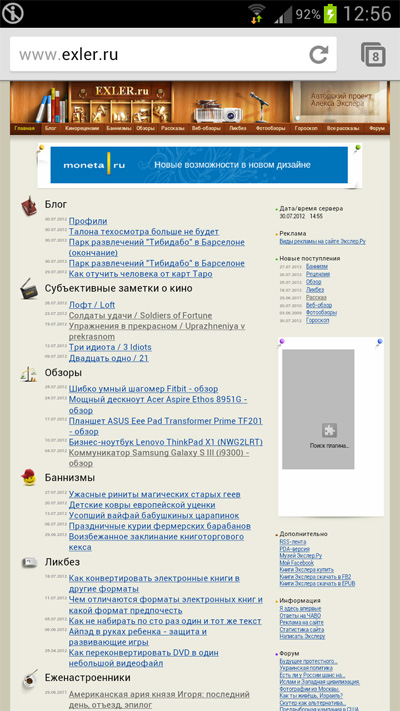 Браузер - пробовал Chrome, но как-то он так и не прижился у меня. Так же как и Maxthon и еще пара других. Как понравился Dolphin еще когда он был Dolphin HD, так до сих пор не разочаровал. Очень удобно в нем сделана работа с открытыми сайтами - во-первых, что это "табы" как в десктопных браузерах, во-вторых, они прячутся сами через пару секунд, оставляя весь экран для страницы, и появляются при скролле. Как-то это получается ненавязчиво и реально удобно в процессе просмотра страниц.