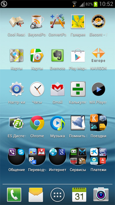 В настоящий момент десктоп моего Samsung Galaxy S III выглядит следующим образом.