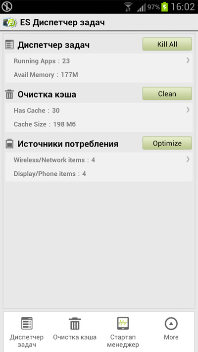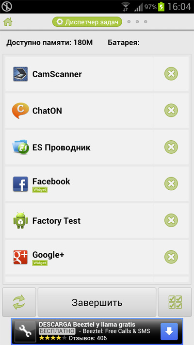 ES Диспетчер задач - хороший диспетчер. Позволяет грохать сразу все фоновые приложения (разумеется, те, которые можно останавливать) или отключать их по отдельности.
