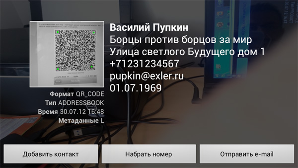 Сканер штрихкода - программа для сканирования QR-кодов. Распознает данные, для товаров делает поиск их описания в Интернете.