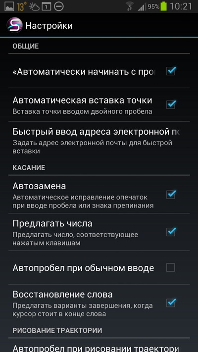 В новом Android этот режим будет входить в базовую клавиатуру, однако я тестировал подобные режимы на разных клавиатурах - они работают очень по-разному. В данном же случае режим срабатывает вполне неплохо - я даже стал им пользоваться. Хотя тут всегда нужно заранее уметь предугадать, знает ли программа набираемое слово или нет. Потому что если не знает - лучше вводить побуквенно, а не через Slide.
