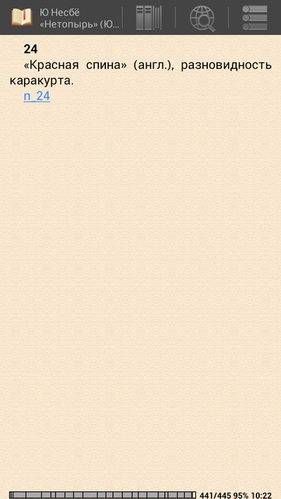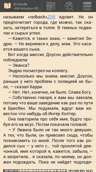 Pasha1st: Alex Exler : За CoolReader - сноски там работают по длинному нажатию на циферку сноски. Возврат по умолчанию через меню-переход-возврат.