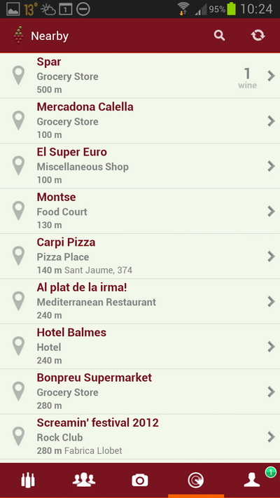 Интересный раздел - вина в соседних магазинах (это заносят пользователи). Для маленьких гордков не особенно актуально, но когда вокруг живет много пользователей этой сети  - информации уже немало.