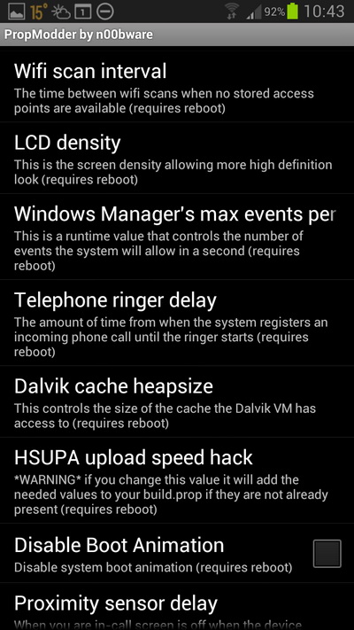 На SGSIII PropModder вылетает, не давая призводить изменения. Рут есть, суперюзер тоже, пока не разобрался.