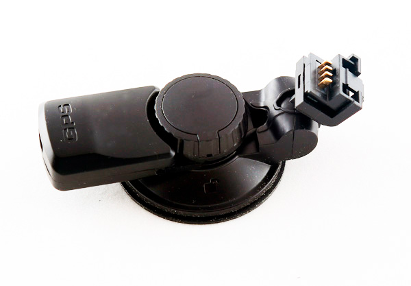 Крепление фиксируется поворотом головки на 90 градусов. В головке есть порт miniUSB, к которому можно подключить питание, тогда видеорегистратор будет питаться через посадочное гнездо, где есть контакты (это удобно, потому что позволяет быстро устанавливать и снимать видеорегистратор и не нужно возиться с подключением питания).