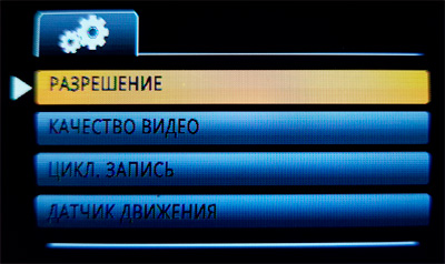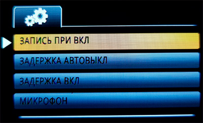 Настройки видеорегистратора вызываются с помощью кнопки меню. Давайте посмотрим, какие возможности там предоставляются.