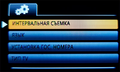 Интервальная съемка - 1, 5, 30 секунд и выключено (может применяться при длительных поездках). Это когда делается один кадр в секунду, пять секунд или полминуты. Забавная штука, но имеет смысл ставить на секунду, не больше, иначе там в записи уже вообще ничего нельзя будет различить.