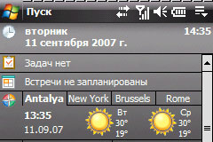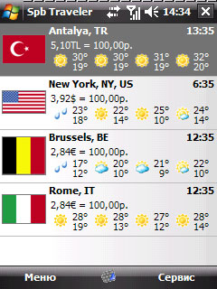 А могут вызываться в качестве отдельного списка, где кроме погоды также перечислены курсы валют (они загружаются в момент подключения к Интернету - так же, как и в случае с Spb Weather):