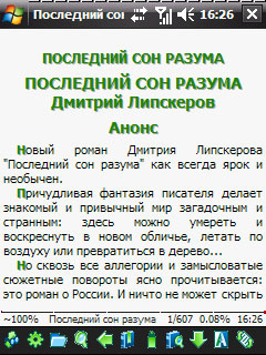 Для чтения книг и статей подавляющее большинство владельцев КПК использует программу Haali Reader. Программа вполне достойная, однако далеко не все знают, что у нее отличное продолжение под названием AlReader. Я где-то с год назад перешел на AlReader и очень этой программой доволен. Она более удобна, чем Haali Reader, и также совершенно бесплатна. Улучшений по сравнению с Haali там довольно много: данные информационной строки, правильная работа с переносами и кодировками, профайлы "день/ночь", перестройка кнопок джойстика в зависимости от ориентации листа, регулировка межстрочного и межбуквенного интервала, плавная прокрутка, ну и так далее. Так что если вы давно используете Haali Reader, попробуйте заменить его на AlReader - на мой взгляд, это лучшая программа для чтения на КПК.