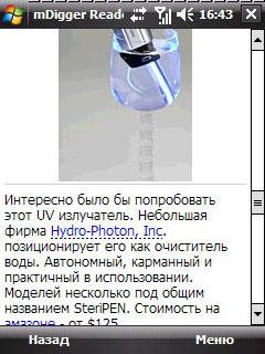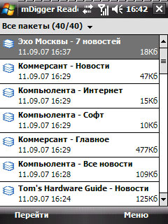 Для чтения новостных каналов на КПК существует немало программ. Я для этой цели использую не просто RSS-ридер, а MDigger - программу-клиент специального бесплатного сервиса, на котором представлено немаленькое количество лент новостей самых разнообразных изданий. Регистрируетесь, отмечаете нужные вам каналы, скачиваете и устанавливаете на КПК программу-клиент, после чего остается только запрашивать обновления и в довольно удобной форме читать соответствующие каналы.