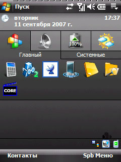 Все эти закладки настраиваются: меняются, редактируются, удаляются и так далее. Также в системе появляется волшебная кнопка Spb Menu, с помощью которой вызываются специальные здоровенные кнопки настроек и управления - как в HTC TouchFlo: