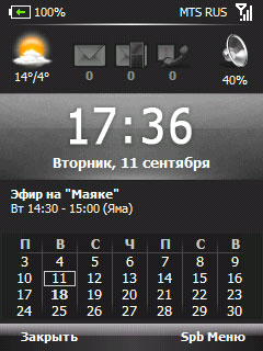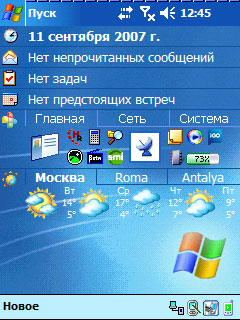 Spb Weather - полезная утилита от того же производителя. Позволяет выводить данные о погоде в виде элемента экрана "Сегодня". Вы можете задавать сразу несколько городов, которые будут выведены в виде закладок, выбирать различные варианты представления (три дня, пять, подробная информация и так далее), единицы измерения и источники данных (Gismeteo, Intellicast...).
