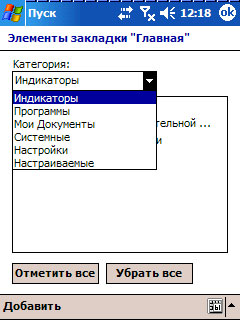 Добавление, удаление и редактирование элементов Pocket Plus производится через контекстное меню. При выборе пиктограмм они разбиваются на следующие категории: