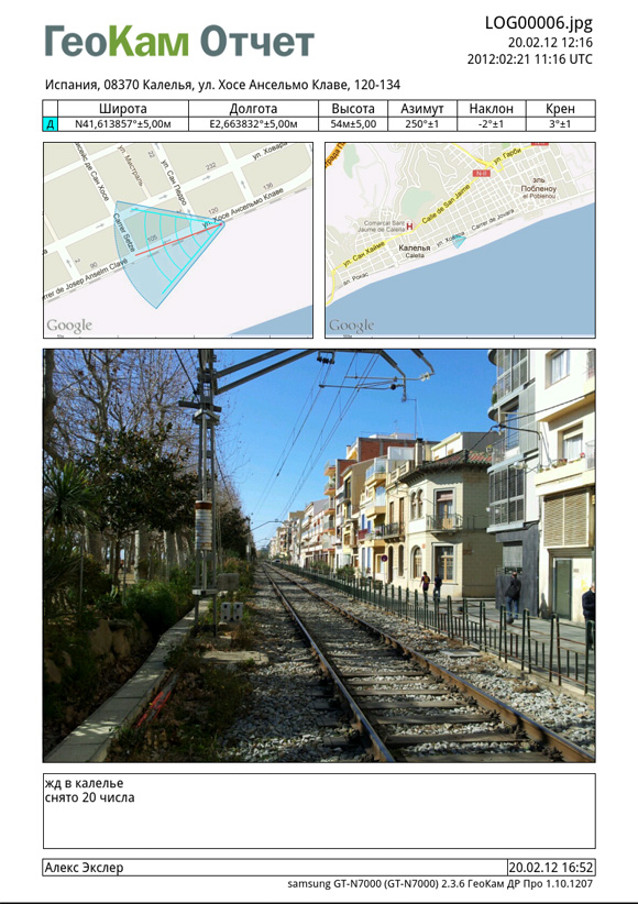 Вся собранная с помощью GeoCam информация о географических координатах, азимуте, наклоне и крене камеры записывается непосредственно в EXIF изображения!