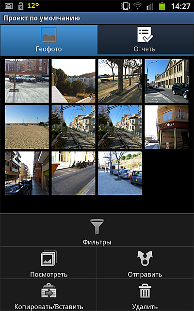 Если нажать андроидную кнопку "меню", то появятся следующие варианты выбора: отправить, создать отчет, удалить.