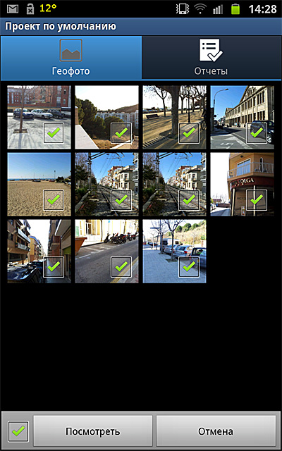 Вторая пиктограмма меню - отчет. В качестве отчета создается документ PDF, в который включаются фото, два варианта масштаба схемы карты (можно также включать спутник) и вся собранная информация. Документ также можно передать-переслать куда угодно или открыть непосредственно на коммуникаторе.