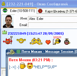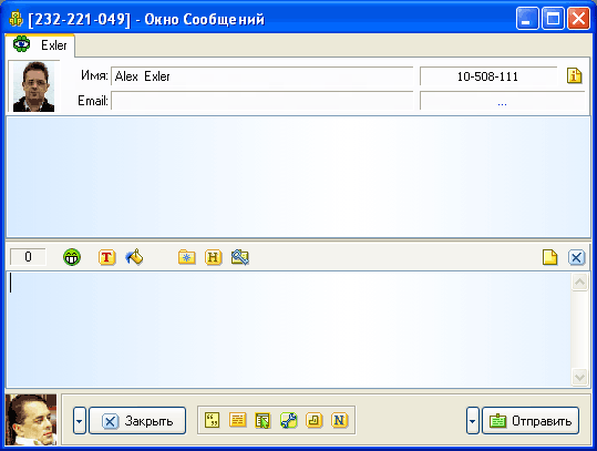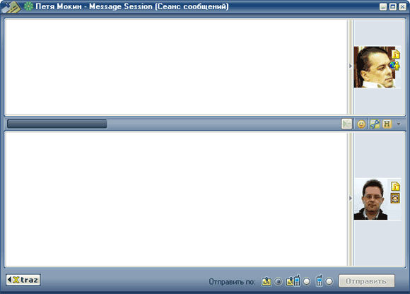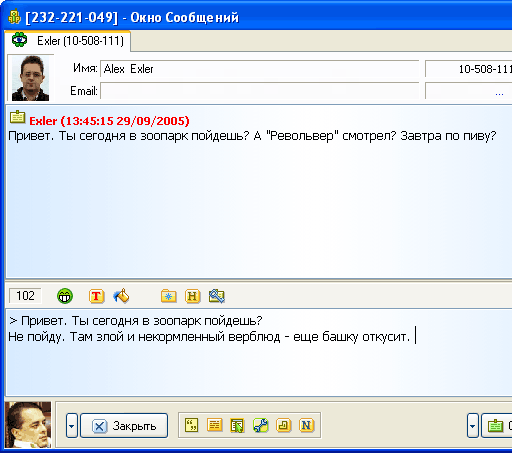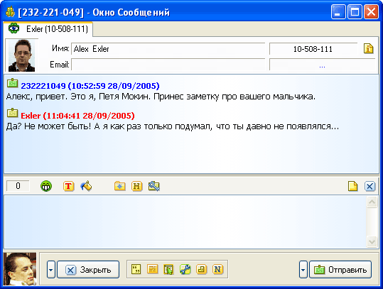 Чтобы открыть окно обмена сообщениями, нужно, как и в обычном ICQ, щелкнуть два раза по нужному абоненту в списке контактов. Окно обмена сообщениями в QIP, с одной стороны, вполне похоже на аналогичное окно в ICQ, но с другой - имеет свои заметные отличия: