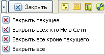 Меню кнопки "Закрыть"
