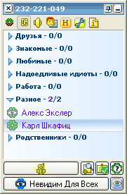Первая и вторая пиктограммы полностью аналогичны подобным пиктограммам в ICQ: включение/выключение показа только тех пользователей, которые находятся на линии, а также включение/выключение групп.