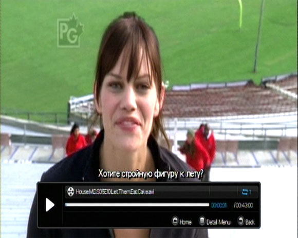 При воспроизведении High Definition не понравилось только то, что плеер не умеет перепрыгивать вперед на заданное число минут или нужную временную метку. Он умеет только ускорять просмотр: теоретически в 2-32 раза, практически - раза в четыре, не больше. Это вообще плохо. Потому что вы не сможете, например, возобновить просмотр ролика с того места, на котором в прошлый раз остановились, а находить временную метку с помощью достаточно медленной перемотки - тут проще повеситься.