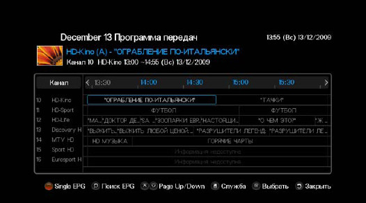 С помощью электронного программного гида можно получать различную информацию о текущих и запланированных передачах.