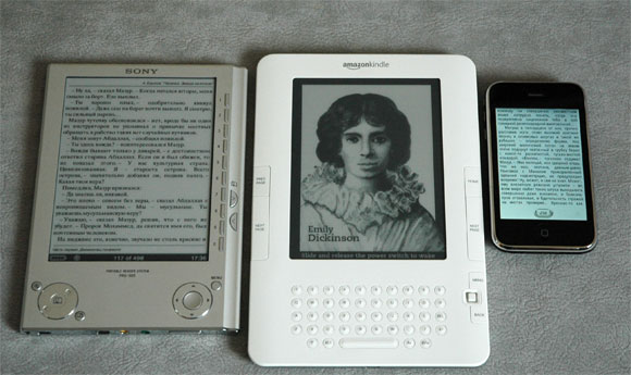 Сравнение размеров: Sony Book Reader PRS-505, Amazon Kindle 2, iPhone