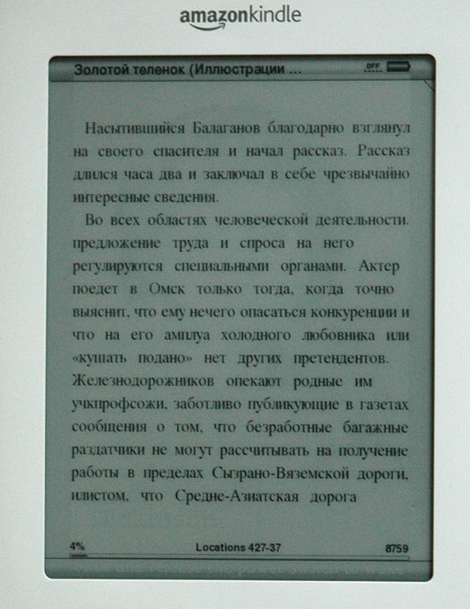 Шрифт у закачанных книг меняется по семи градациям, однако я далеко не сразу нашел, с помощью какой кнопки это делается. Оказывается, для изменения шрифта нужно нажать специальную кнопку на клавиатуре.