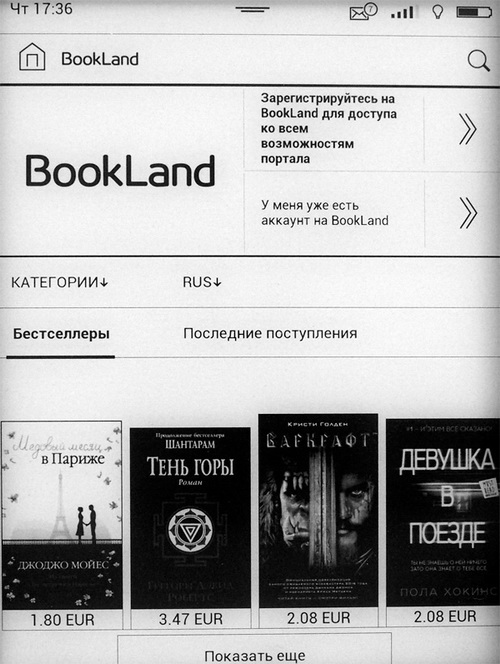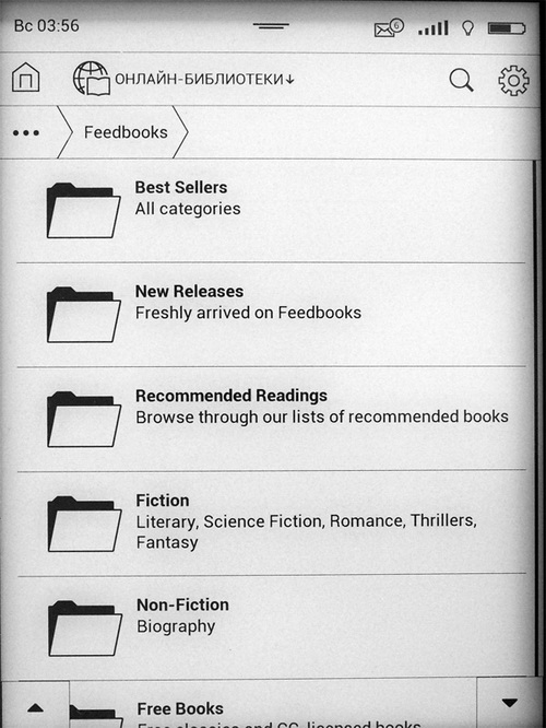 Погонял ридер несколько дней - работает без каких-либо проблем. Качество явно стало лучше, скорость заметно возросла. Очень удобно иметь возможность прямо с ридера приобретать электронные версии книг в онлайновых магазинах и работать с онлайновыми библиотеками. (Впрочем, замечу, что это очень многие ридеры умеют делать.)