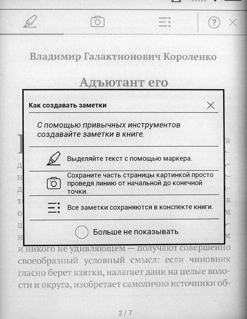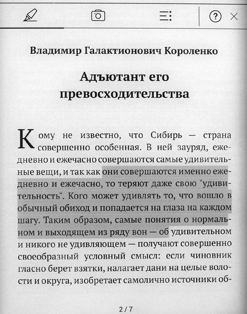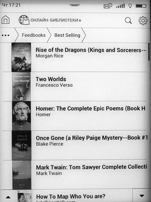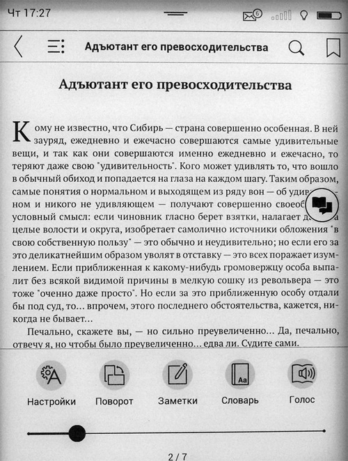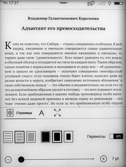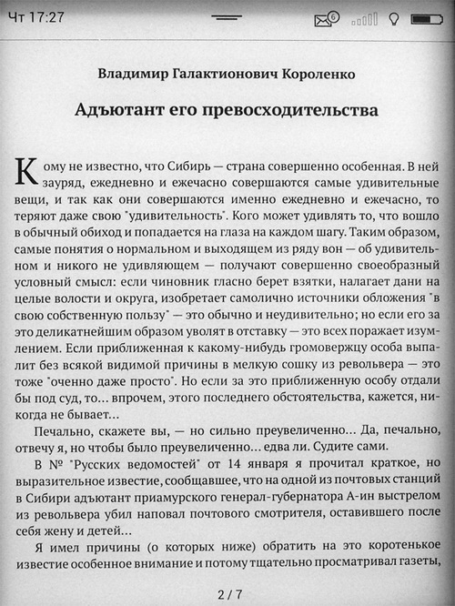 Чтобы показать работу ридера, я не стал делать скриншоты, а для наглядности делал фотографии экрана - поэтому в верхней части кадров и справа может быть видна тень от бортика.