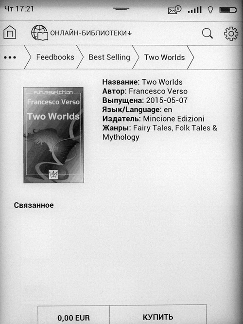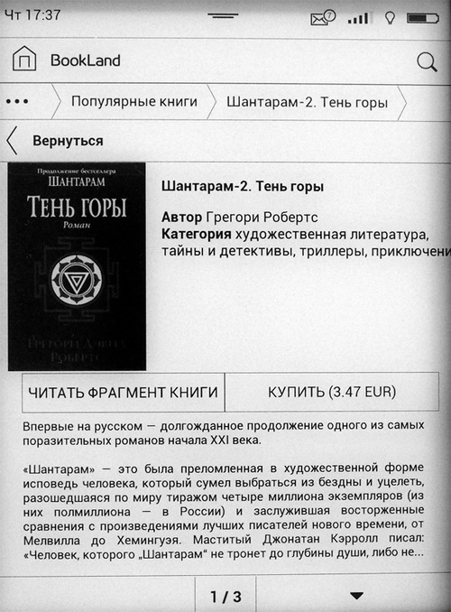 Просмотр информации о книге, можно почитать фрагмент и купить.