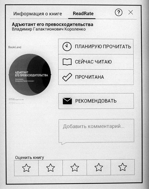 В информации о книге закладка - сервис ReadRate: отметки на книге, рекомендации с комментариями, общая оценка.