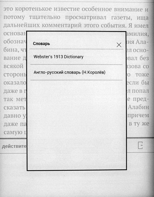 2. Много читаю на английском - приходится пользоваться словарём. Быстрое переключение между читалкой и словарём - рулит. Возможность поставить свой словарь - тоже.