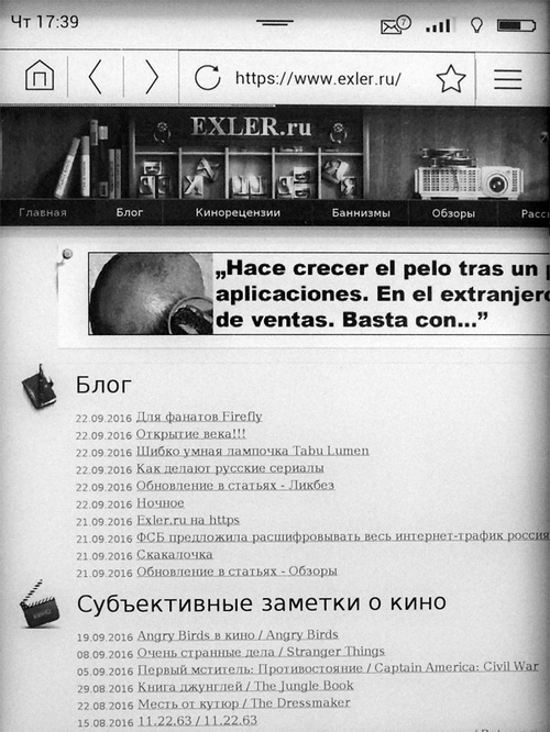 Погонял браузер. Если раньше с экрана ридера браузерами пользоваться было практически невозможно, то сейчас скорость и качество стали уже более или менее приемлемыми.