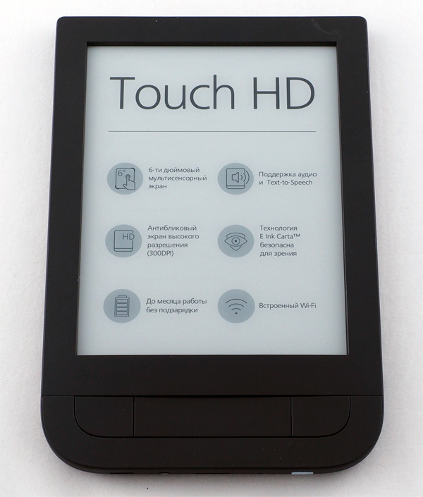 Тачскрин здесь инфракрасный: в отличие от емкостных тачскринов у него отсутствует специальный чувствительный слой, так что инфракрасный тачскрин никак не снижает качество изображения на дисплее. (Я тут сразу вспомнил первый SonyReader с сенсорным дисплеем: изображение там выглядело, как сквозь мутное стекло.)