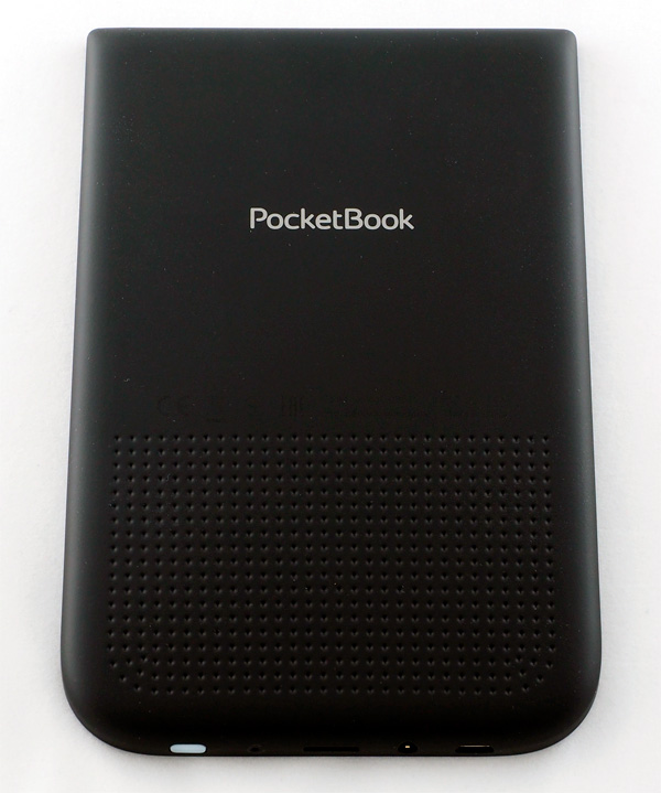 Подход к дизайну у PocketBook, насколько я могу судить по предыдущему обзору, изменился не сильно - по крайней мере для данной модели. Покрытие софт-тач (оно наиболее устойчиво лежит в руки), скругленный низ, где находятся четыре управляющие кнопки "Домой", "Назад", "Вперед" и "Меню". При наличии сенсорного дисплея кнопки, в общем-то, можно не использовать, но хорошо, что в PocketBook оставляют два варианта управления: лично мне, например, в ридере удобнее листать страницы кнопками, а не проводить по экрану.