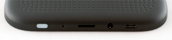 На нижнем торце - удобная кнопка питания, отсек для карты microSD, аудиовыход, выход microUSB.