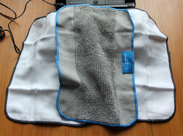 В комплект входят три тряпки: серая - для влажной протирки, две белые - для сухой протирки.