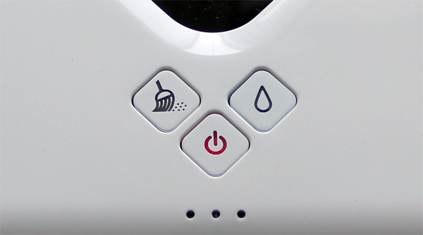 Для управления роботом предусмотрены всего три кнопки: питание, мокрая уборка, сухая уборка.