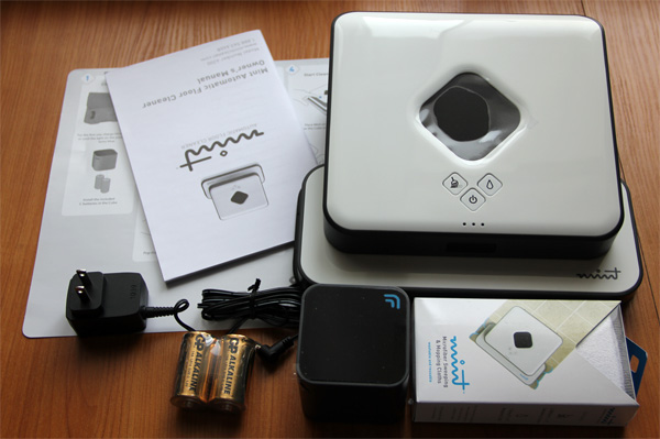 Поставляется Mint в компактной коробочке. В комплект входят: универсальный блок питания, навигационный блок NorthStar, три тряпки - для сухой и для влажной уборки.