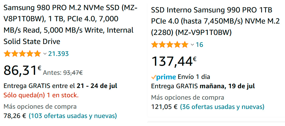 Терабайтного диска мне должно было хватить, потому что от старого компьютера оставался SSD Samsung 980 (не Pro), который я не так давно покупал специально под терабайтный OneDrive, и я как раз его и планировал поставить в новый ПК вторым диском (там у выбранной материнской платы три слота M.2).