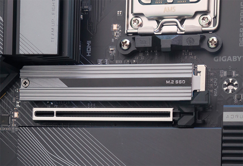 Все три разъема M.2 оснащены радиаторами. Снимаем радиатор первого разъема, устанавливаем память.